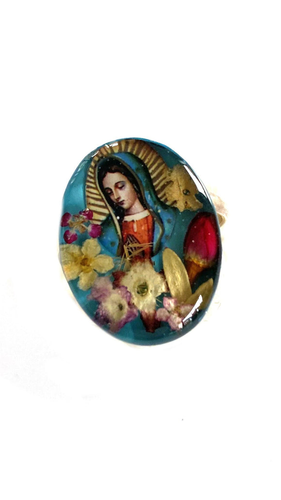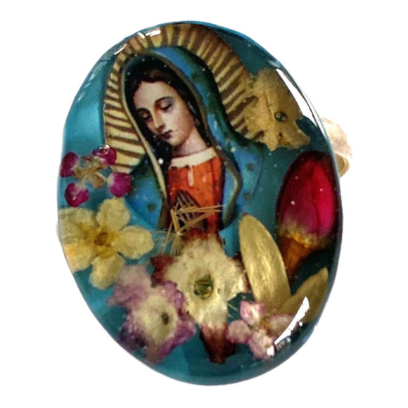 B002 Dried Flowers/Mother Mary Ring Adjustable