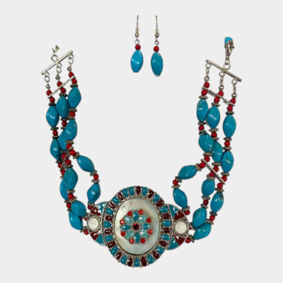N555 Short Necklace Turquoise/Red Choker
