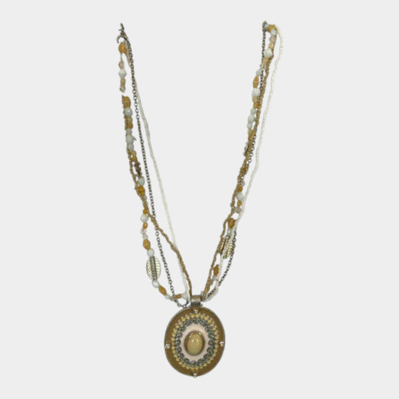 N580 Camel Multi Bead Necklace w Pendant