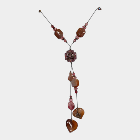 N588 Vintage Necklace Pinks/Browns Long