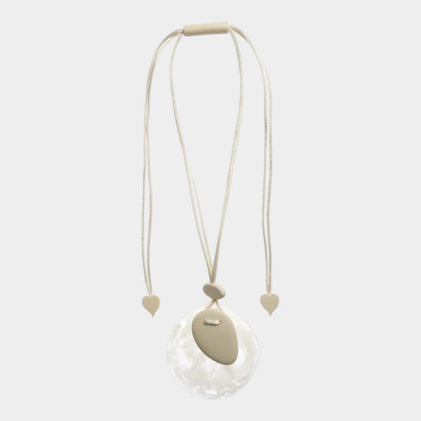Elegant and versatile, the SABAAI white adjustable necklace features smooth white resin elements set in a sleek silver-tone frame. Its minimalist design and adjustable length offer effortless styling, making it a perfect accessory to complement both casual and formal looks with subtle sophistication.