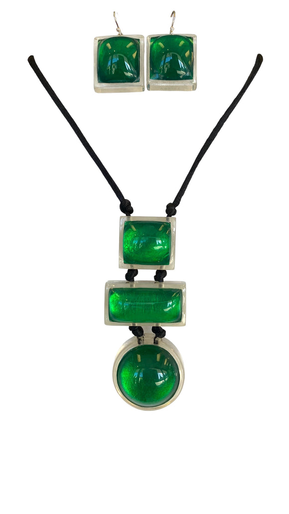 10440201SGRESET Twist Green on Silver Pendant plud Earrings