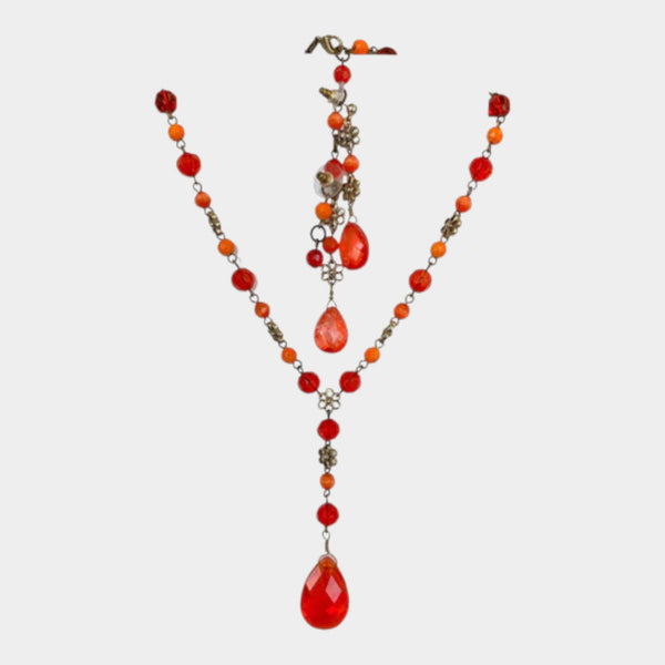Orange Necklace with Earrings