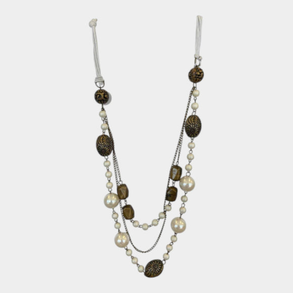 N431 Beautiful Layered Brown and White Necklace