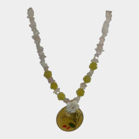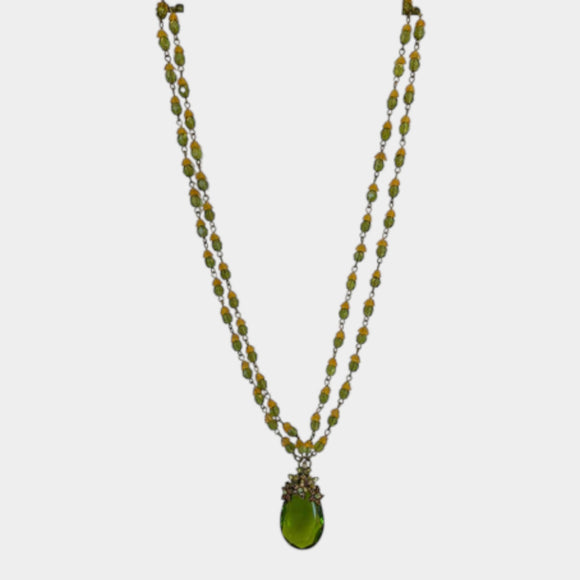 N445 Green/Yellow Necklace with Green & Crystal Pendant