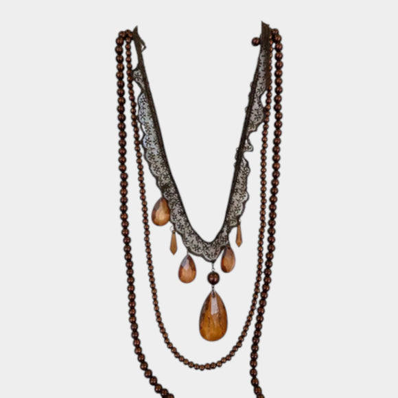 N440 Long Brown Lace Necklace