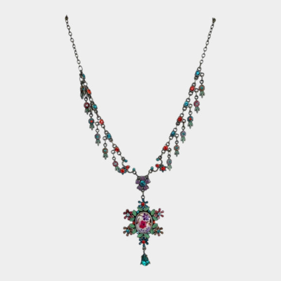 N446 Medallion Necklace with Crystals