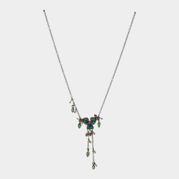 N442 Blue/Green Crystal Tassle Necklace