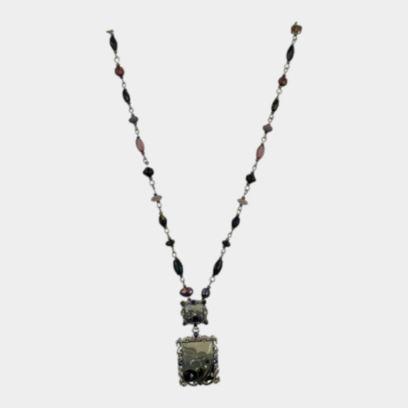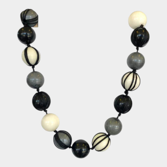 N488 Interesting Black Bead Necklace with Pendant