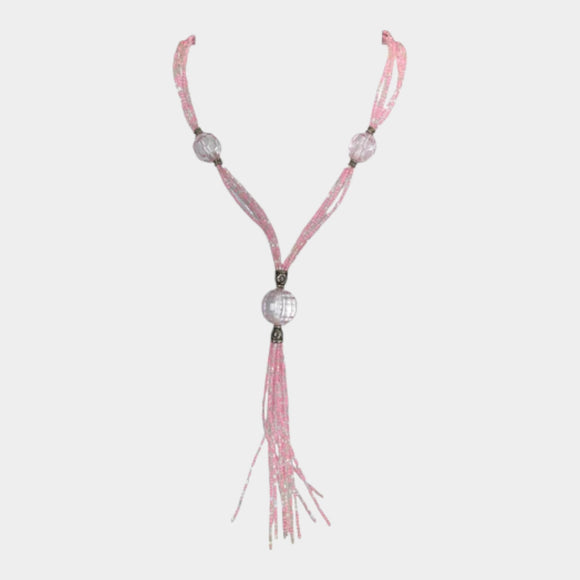N474 Pink Tassle Necklace