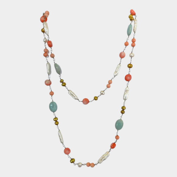 N476 Multi Pastel Bead Necklace