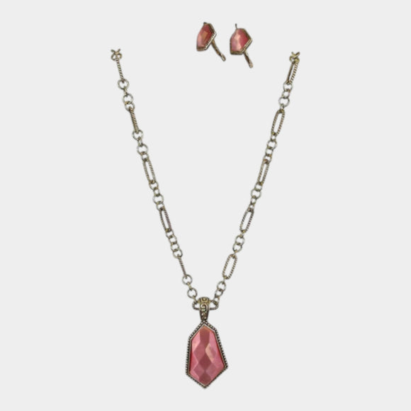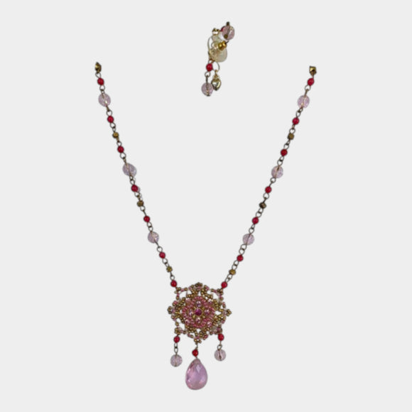 N485 Pink Pendant with Earrings