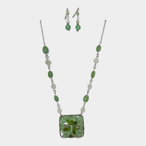 N482 Green Bead Necklace with Earrings