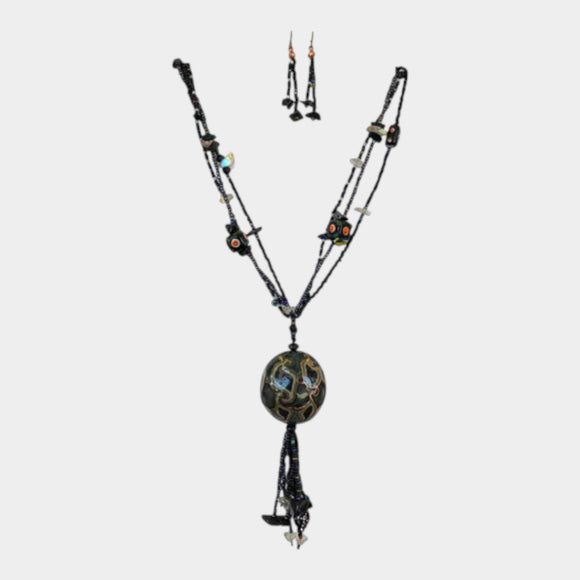 N483 Black Bead Necklace with Earrings