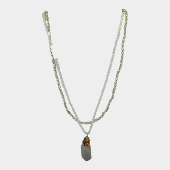 N489 Stone on Seed Pearl String with Earrings
