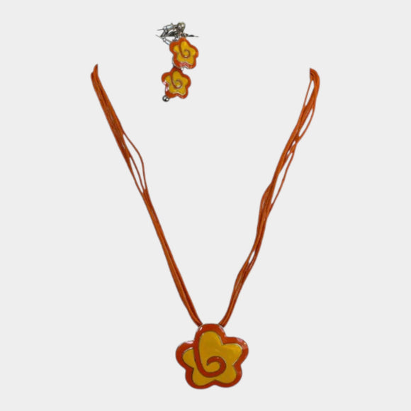 N479 Orange Necklace with Earrings