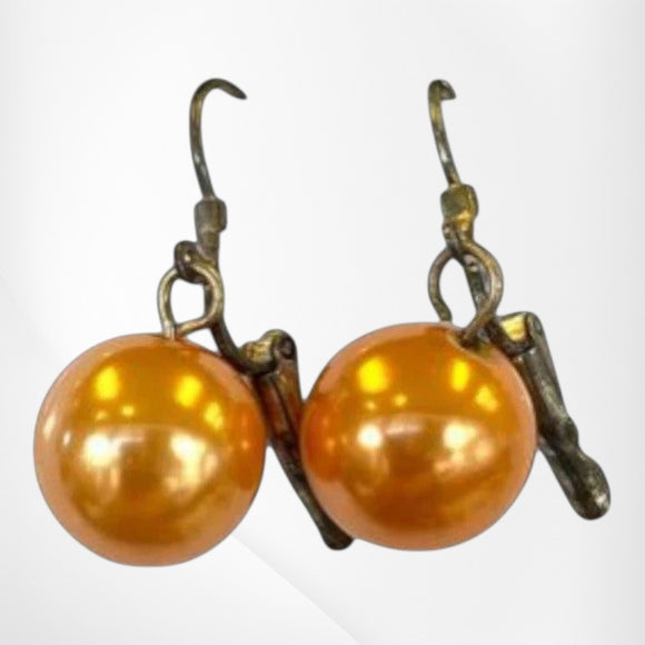 E051 Orange Pearl Bead Earring