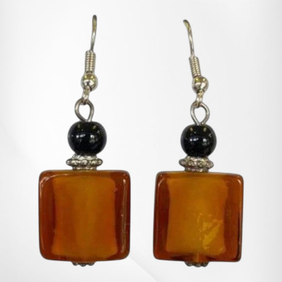 E045 Black/Cream Glass Bead Earring