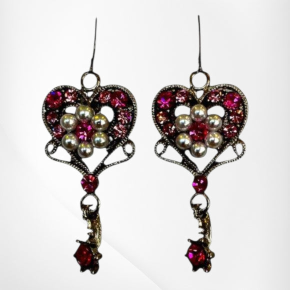 E0N334 Vintage Earrings Pink Crystals/Pearls