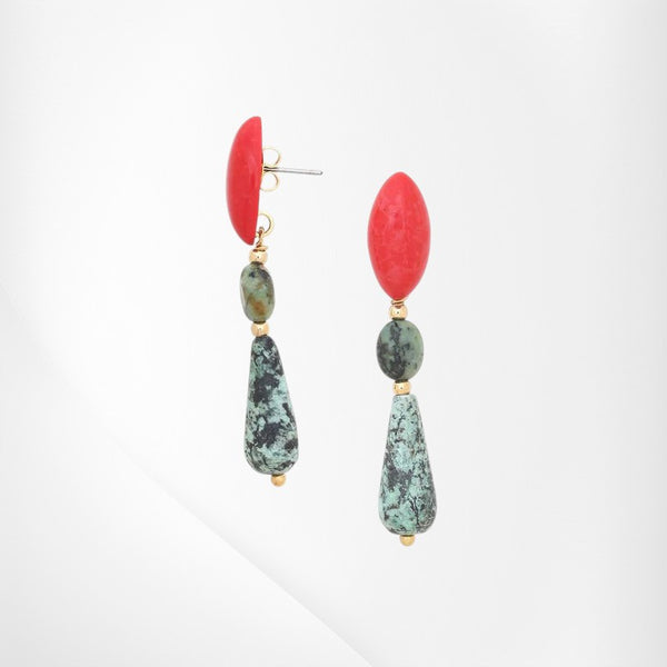 Add a unique touch of natural elegance to your collection with the KHALANGA African Turquoise Drop Post Earrings—where the beauty of the earth meets contemporary design.