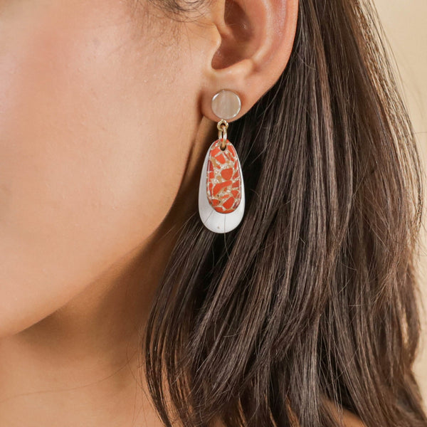 Artfully combining natural elegance with modern design, the Milano post earrings feature a chic terrazzo stud paired with a delicate white shell dangle. The terrazzo’s colourful flecks contrast beautifully with the smooth, luminous shell, creating a balanced and eye-catching accessory. Lightweight and comfortable, these earrings bring a fresh, coastal-inspired vibe to any outfit.