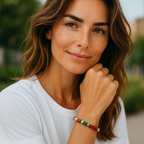 Bold and effortlessly chic, the Sauvage bracelet combines natural textures with a rugged elegance inspired by untamed landscapes. Crafted from organic materials with a mix of earthy tones, this versatile bracelet adds a touch of wild sophistication to any outfit. Lightweight and comfortable, it’s perfect for layering or wearing alone as a statement accessory.