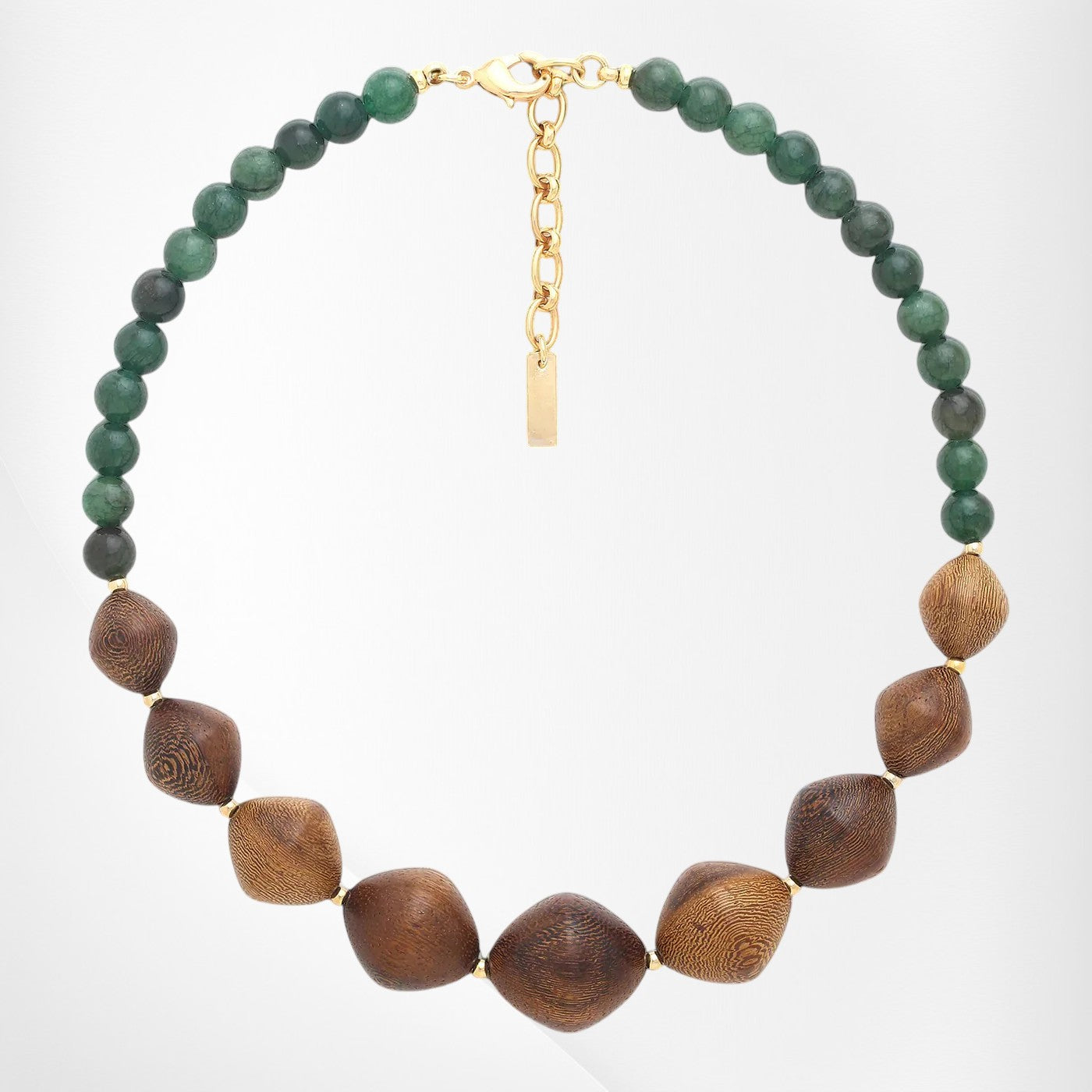 Earthy and elegant, the Adventurine short robles necklace blends rich natural textures with a minimalist silhouette. Crafted from warm-toned robles wood and complemented by subtle design accents, this lightweight necklace offers organic charm and timeless versatility. Perfect for everyday wear or layered styling, it reflects the raw beauty of nature with a refined touch.