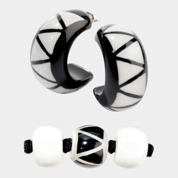 E141 Black/White Bead Earring
