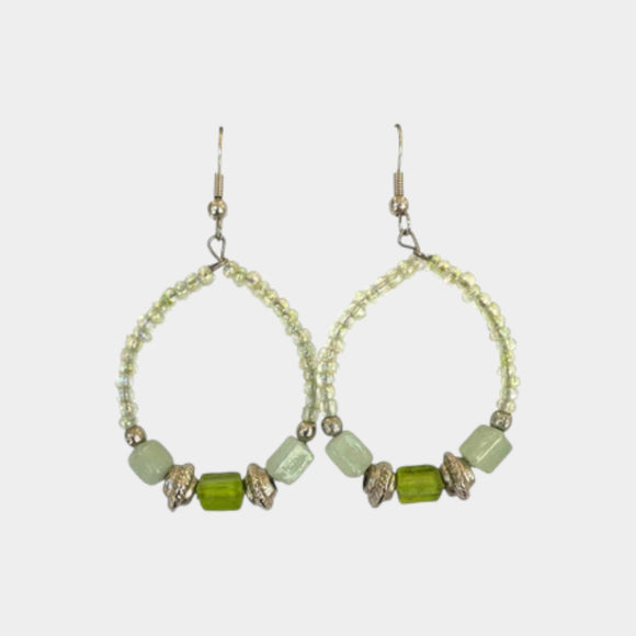 E139 Green Bead Hoope Earring