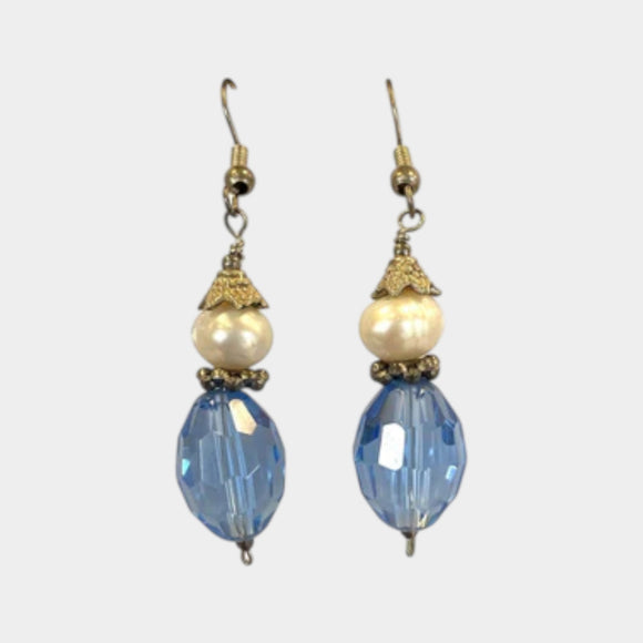 E140 Clear Blue Bead & Pearl Earring