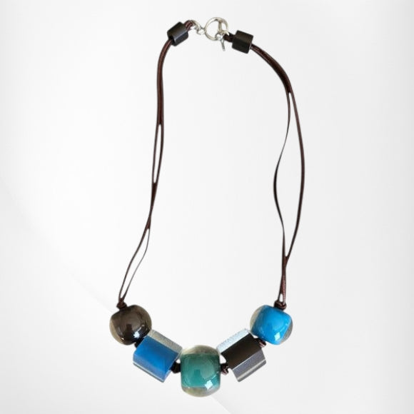 Colourful cubes. Brown/Green and Blue. On a lock closure