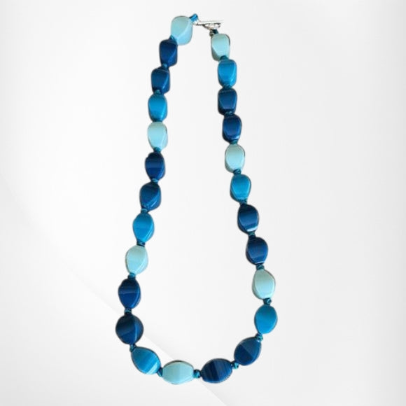 Blue arabesque necklace.