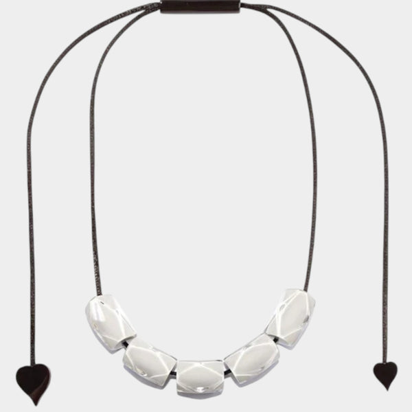 Add a vibrant touch to your ensemble with the LUCE White Adjustable Necklace by Zsiska. This handcrafted resin necklace features beads in white, suspended from an adjustable cord. The adjustable design allows you to customize the length, making it versatile enough to complement both casual and formal outfits. Lightweight and comfortable, this necklace is a perfect accessory to brighten your look.