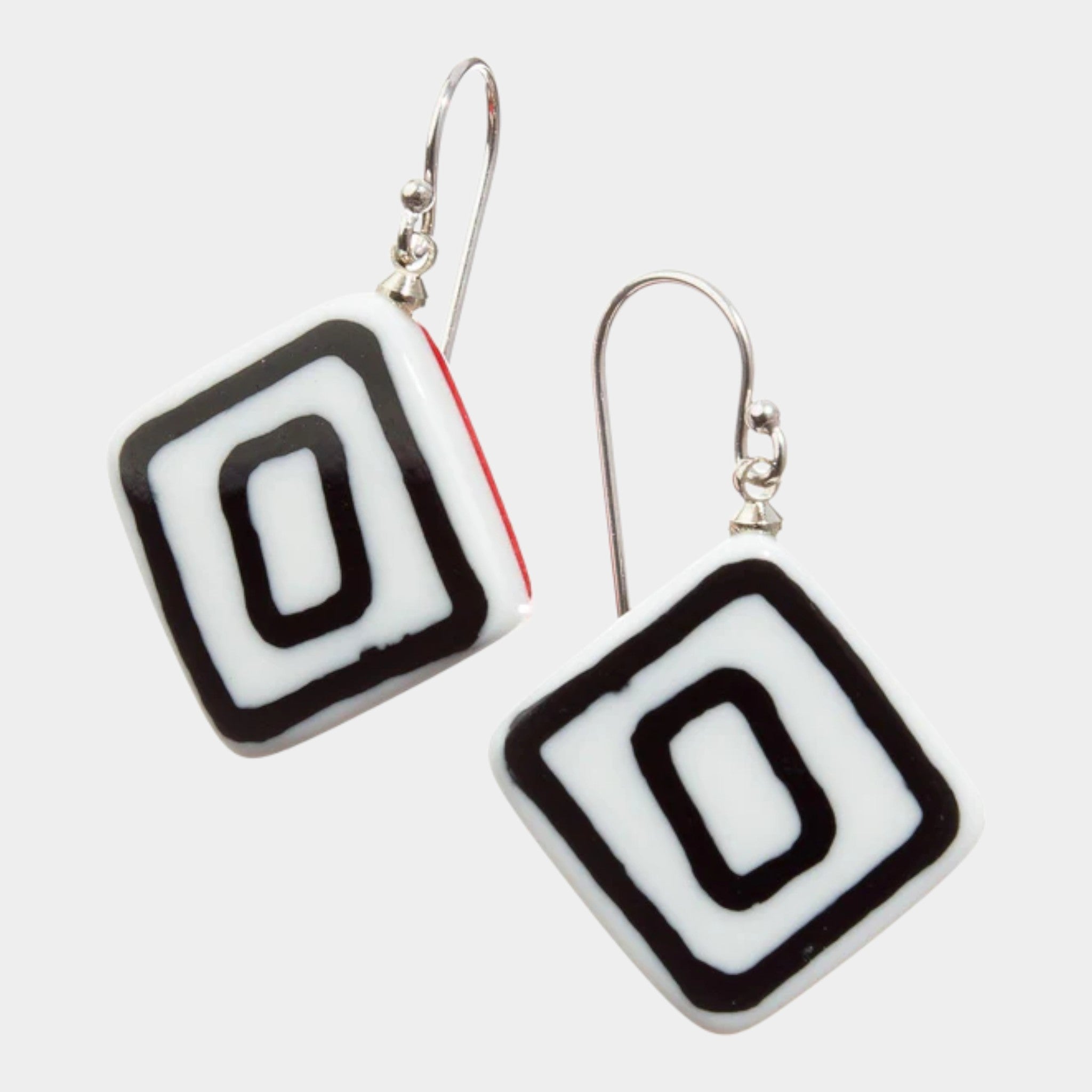Available in Black, Blue, and Red, each earring showcases a vibrant nod to Piet Mondrian's iconic style on one side, while the reverse offers a chic black-and-white graphic.