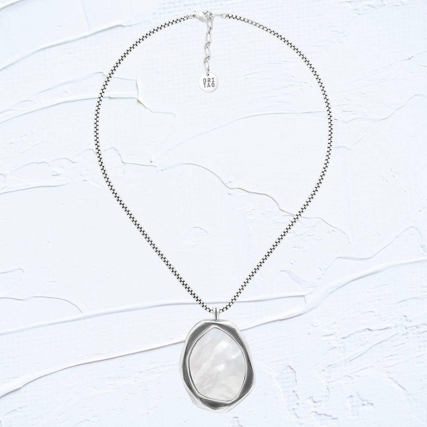 OT1531961 REFLET silvered necklace with white MOP pendant is backordered and will ship as soon as it is back in stock.