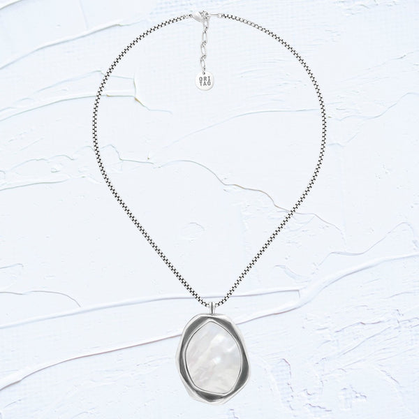 REFLET silvered necklace with white MOP pendant