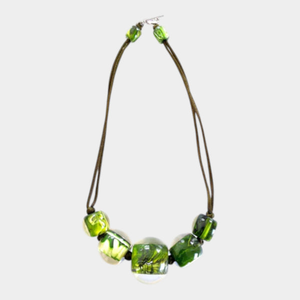 COLOURFUL BEADS Green Marle 52cm