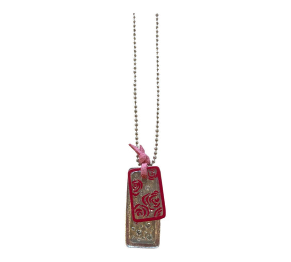 A040204S011Q48 Necklace on Chain Pink/Diamante/Silver
