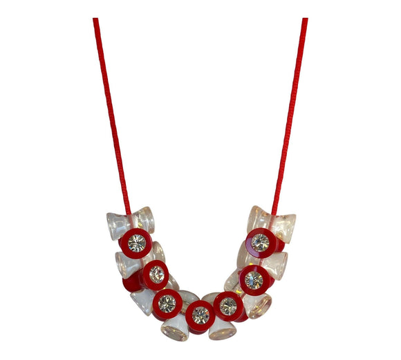 N220101RDCLQ15 Crystal Necklace Red/Diamante Adj