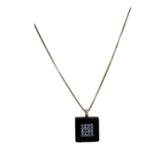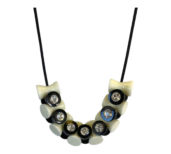 N221101BLWHQ15 Crystal Necklace Black/Diamante Adj