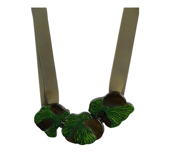 N301101GREEQ03 Plant Necklace Green/Brown
