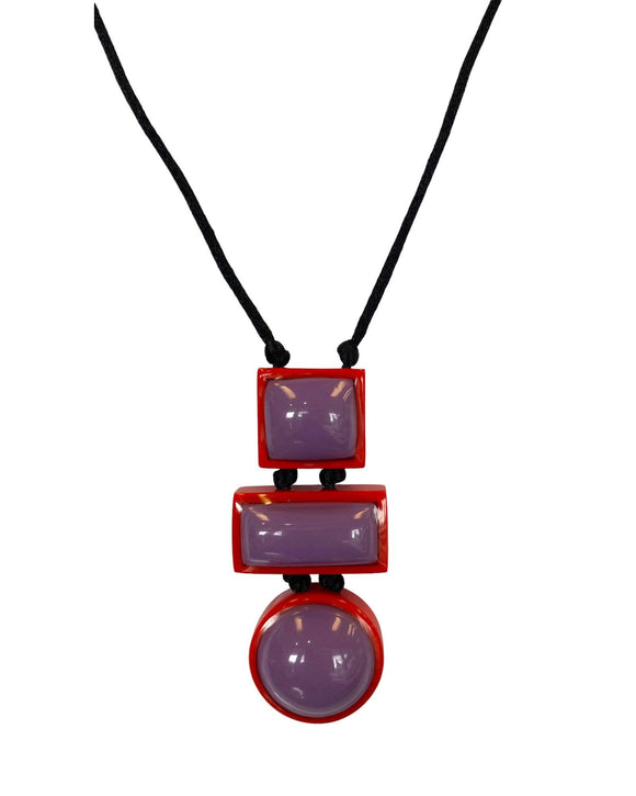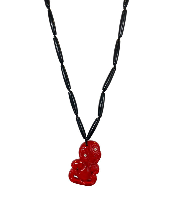 NZ011 Tiki Multi Bead long Pendant Black/Red