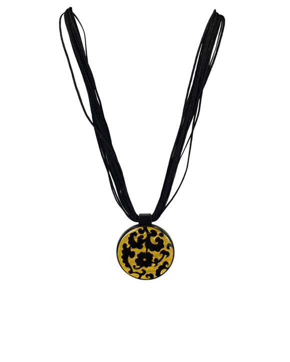 NZ016 Multi Strand BARROQUE Pendant Gold/Black