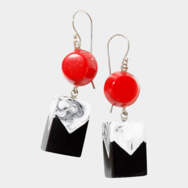 Featuring handcrafted resin beads in a vibrant red shade, these earrings combine bold colour with a lightweight, comfortable design.