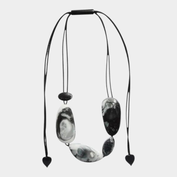 Bold and elegant, the KAMO black adjustable necklace showcases sleek black resin elements framed in a polished gold-tone setting.