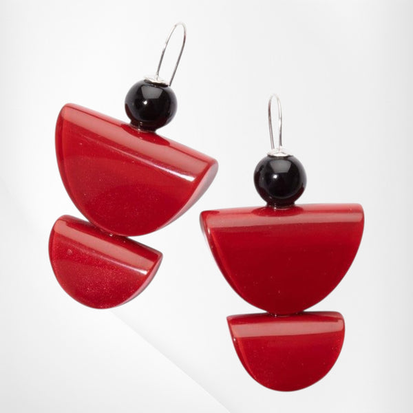 8320501REDDQ00earring SIENNA 3beads fixhook, red 8320