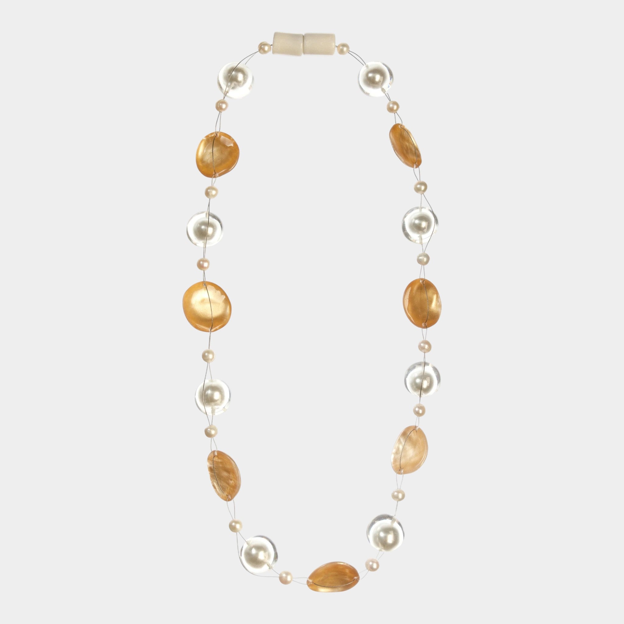 This elegant piece features a 2.1 cm bead size and is equipped with a convenient magnetic closure for easy wear.