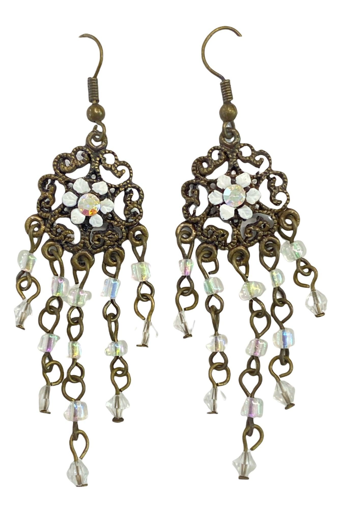 N189 Antique look with White Flower Earrings is backordered and will ship as soon as it is back in stock.